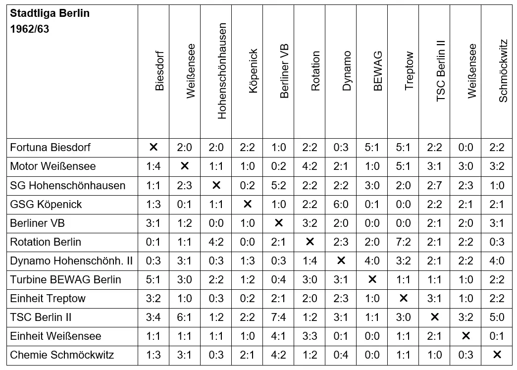 Stadtliga Berlin 1962/1963 auf fussball-ddr.de | Die Seite zum Thema DDR-Fussball von der Oberliga bis in die KreisklassenDu erreichst uns auch unter: