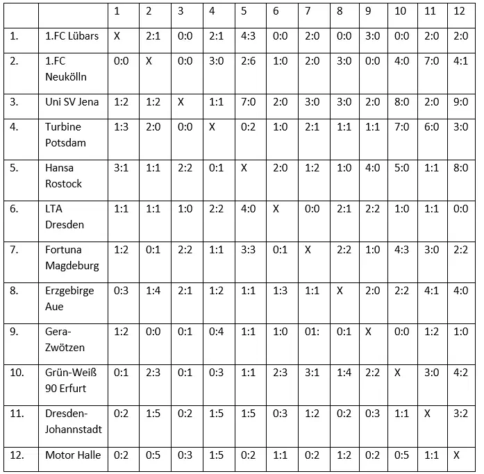 Siegen: Silke Rottenberg, Andrea Euteneuer, Meike Fitzner (60. Marjan Veldhuizen), Jutta Nardenbach, Loes Camper, Britta Unsleber, Silvia Neid, Doris Fitschen, Heike Czyganowski, Michaela Kubat, Gaby Mink (57. Monika Meyer); Cheftrainer: Gerd Neuser