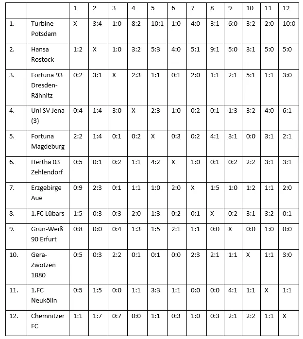Frauen NOFV-Oberliga 1993/1994SpSUNToreDiffPkt